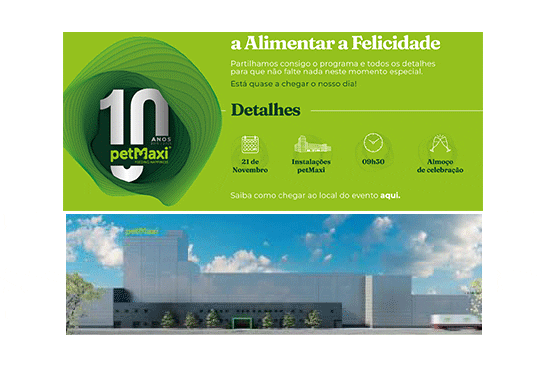 É já no próximo dia 21 de novembro que a emprsa petMaxi, com sede em Ferreira do Zêzere, comemora 10 anos de atividade, num evento que assinala também a inauguração do novo armazém automático — mais um passo na modernização e crescimento da empresa.