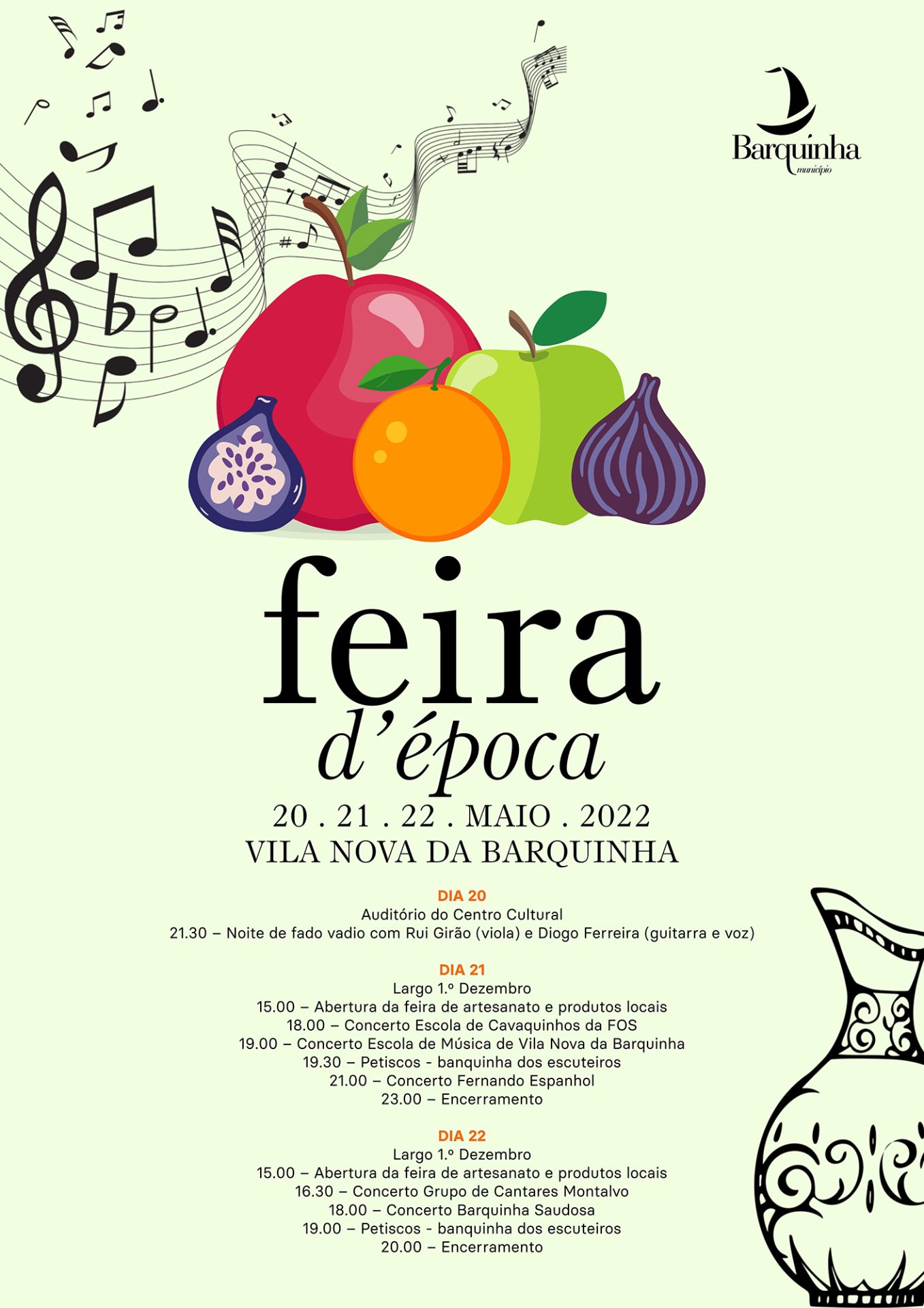 Após dois anos de interregno, o Município de Vila Nova da Barquinha vai promover mais uma edição da Feira de Época, nos próximos dias 20, 21 e 22 de maio, no parque ribeirinho de Vila Nova da Barquinha.