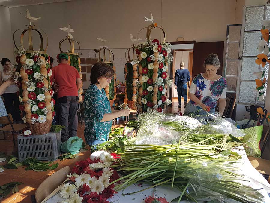 É uma Festa que tem por base o ciclo Pascal, pois no Domingo de Páscoa o Juiz Novo e os Irmãos que com ele servem percorrem a Freguesia, acompanhados do grupo de Gaiteiros, durante o percurso são lançados foguetes que servem para anunciar a visita e o inicio do ciclo festivo, ciclo este que tem o seu ponto alto com a realização do cortejo dos tabuleiros, no Domingo de Pentecostes quinquagésimo dia depois da Ressurreição.