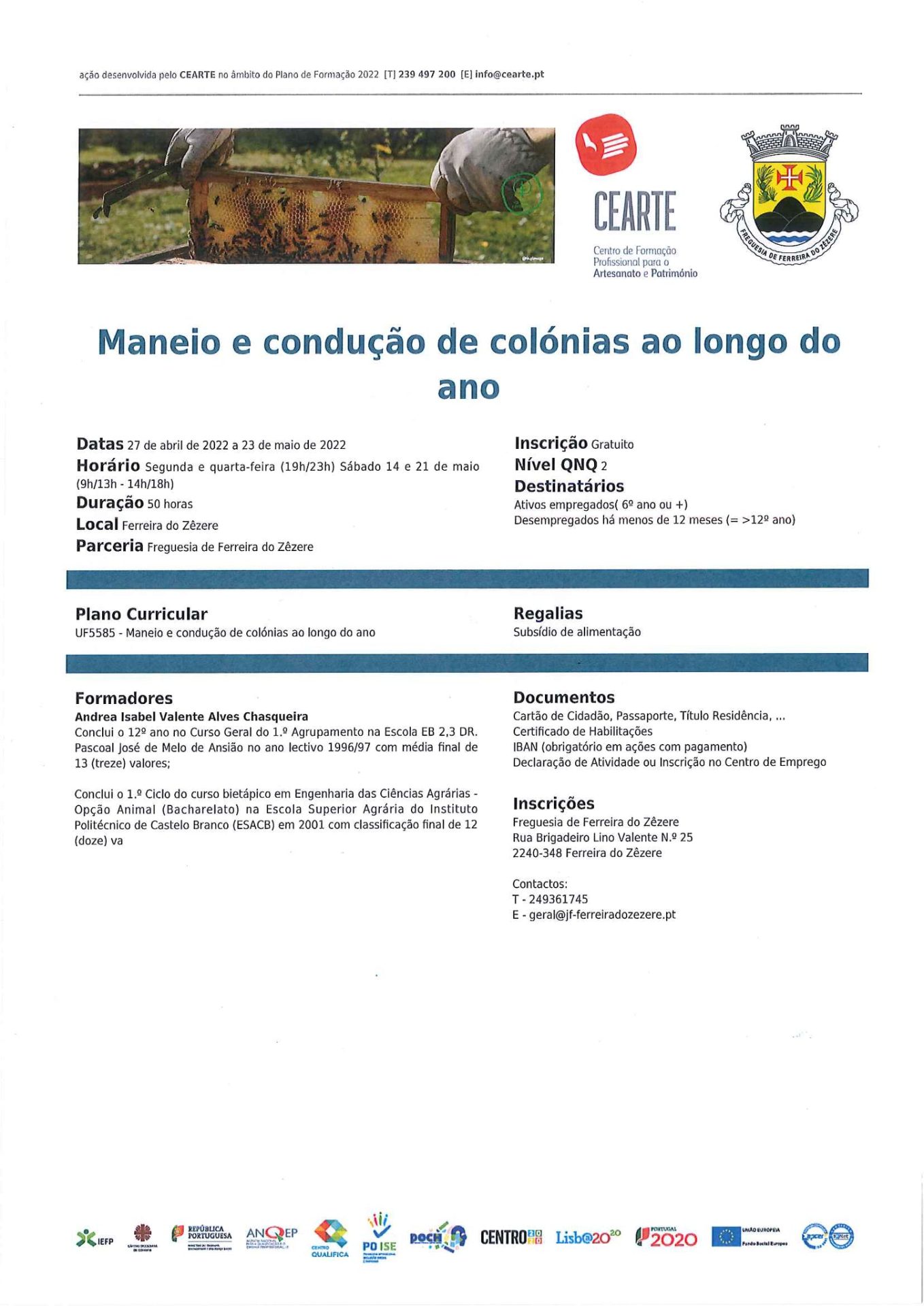 Estão abertas as inscrições para a formação de Apicultura – Maneio e condução de colónias ao longo do ano em Ferreira do Zêzere.